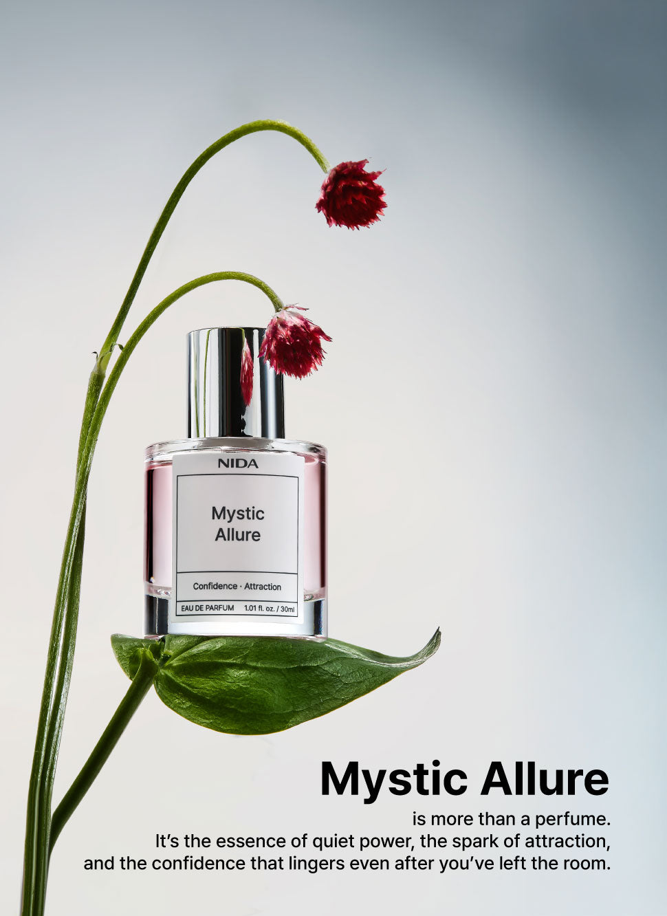 Adéntrate en un mundo donde el magnetismo se funde con el misterio, y cada mirada se prolonga un instante. El Eau de Parfum NIDA “MYSTIC ALLURE” está creado para quienes llaman la atención sin decir una palabra: sofisticadas, enigmáticas y con una confianza poderosa. Diseñadas para despertar la intriga y realzar la presencia, te envuelven en un aura de atracción natural que cautiva y perdura.