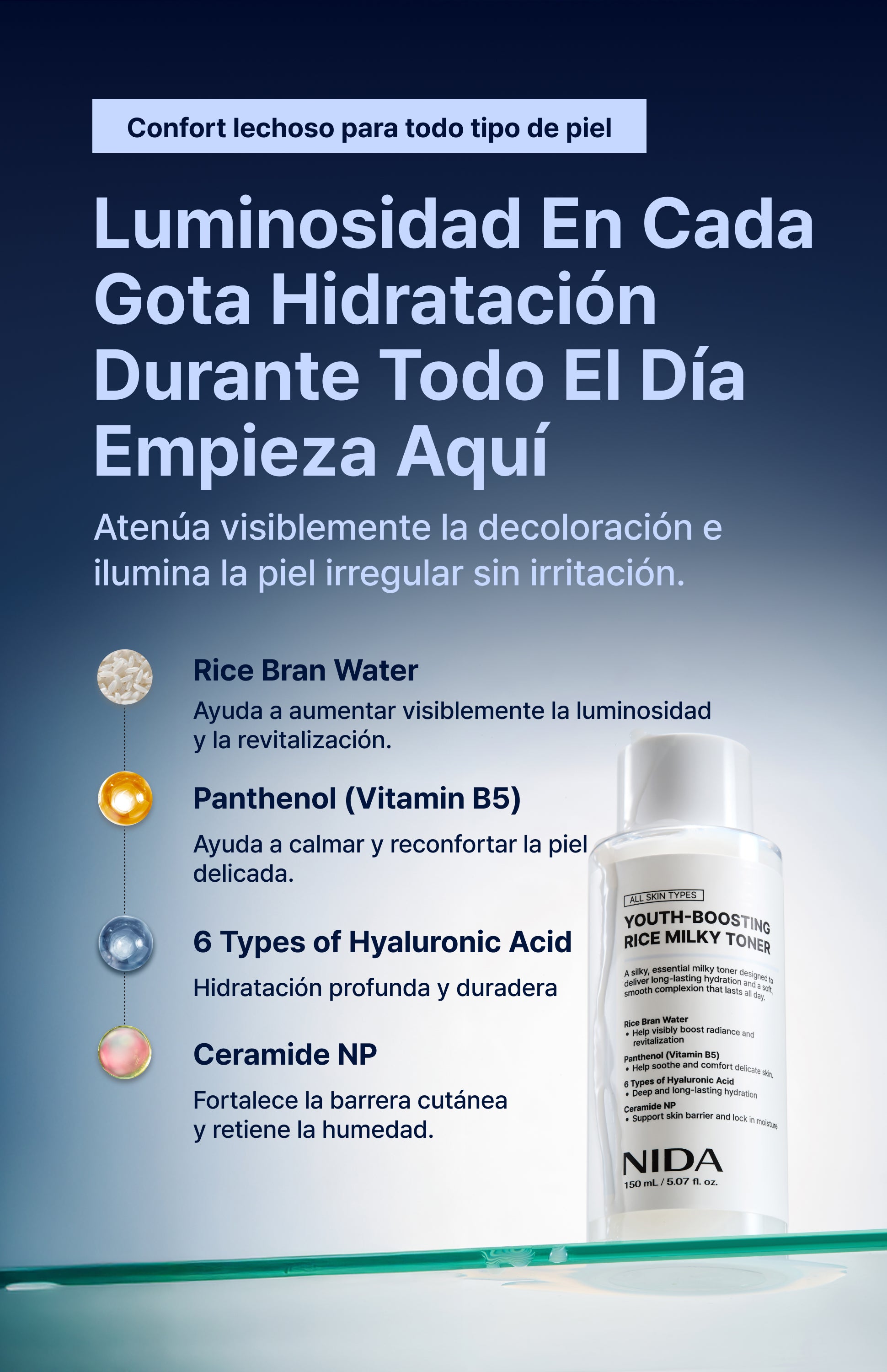 Proporciona una hidratación duradera durante hasta 24 horas, ayudando a que la piel luzca tersa y fresca.